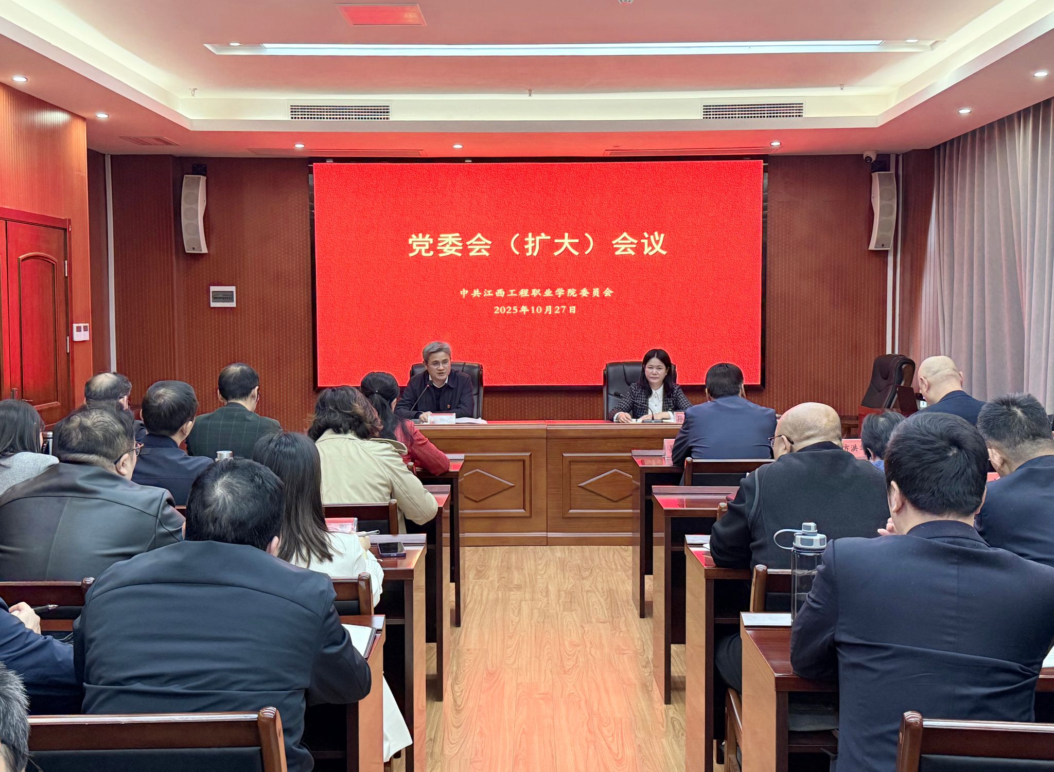 10月27日下午,学校召开党委会(扩大)会议,传达学习党的二十届四中全会精神,省委常委会精神,全省领导干部会议精神,省委教育工委、省教育厅领导干部会议精神。学校党委书记花严红主持会议并讲话,党委副书记、校长孙江云传达会议精神。